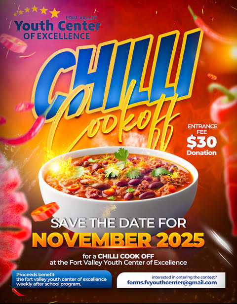 The FVYCE Annual Chili Cook-off brings together the Middle Georgia community for a day of food, fun, and friendly competition! Local chefs and home cooks will showcase their best chili recipes while you enjoy tastings, music, and family activities.